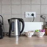 Eine komplette Küche mit einem Wasserkocher, einem Kühlschrank und einem Herd gehört zu den Selbstversorgungseinrichtungen. Gerichte der französischen Küche werden im Restaurant La P'Tite Voile serviert, das sich nur ein paar Schritte entfernt von diesem Apartment befindet. Die Bushaltestelle Mairie liegt in etwa 5 Gehminuten Entfernung von diesem 90 m^2 großen Apartment.